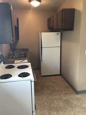 This is an upstairs unit. Laid out with an open floor plan these units are spacious and efficient. The grounds include a common area for all tenants as well as off street parking. Additional storage is provided on the property with separate secure-able compartments for each apartment unit.